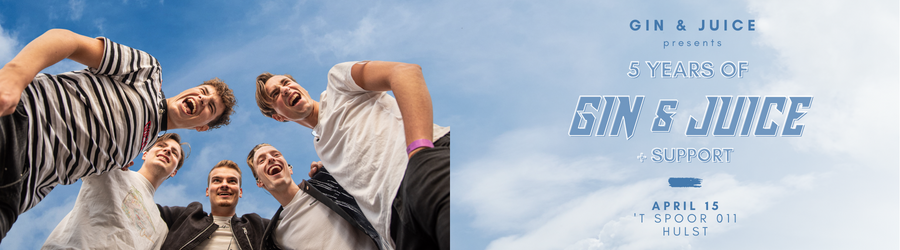 GIN & JUICE bestaat 5 jaar, en dat moet gevierd worden! Daarom geeft de band op 15 april hun allereerste eigen show. Verwacht een avond vol energie, de grootste hits en een hoop confetti!