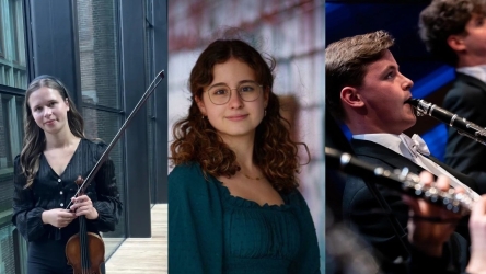 Het Aram Trio bestaat uit Gijs Linn (klarinet), Matthia Elders (viool) en Ana Teresa Pereira (piano). Alle drie studeren zij aan het Conservatorium van Amsterdam en sinds 2025 vormen zij samen dit veelbelovende ensemble, onder de bezielende begeleiding van saxofonist en componist Willem van Merwijk. Dankzij de bijzondere combinatie van instrumenten beschikt het trio over een opvallend rijk en kleurrijk klankpalet.