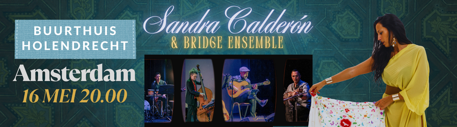 Dit voorjaar keert Sandra Calderón terug voor een nieuw en intiem muzikaal avontuur met het Bridge Ensemble. Deze keer staat haar expressieve zang nóg meer in het middelpunt. Verwacht een zorgvuldig samengestelde selectie van Flamenco- en Spaanse klassiekers, met oosterse invloeden, liefdevol afgewisseld met melodieën uit de Perzische muziektraditie.