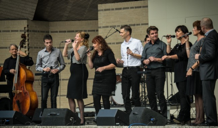 Take Eight wordt gevormd door, zoals de naam al zegt, 8 zangers en zangeressen, begeleid door een combo.