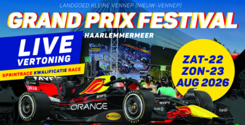 Bestel vóór 30 april jouw festival- of Domino’s Movienight ticket en ontvang GRATIS de exclusieve Formule 1 Racekalender 2026 met aanvangstijden! Zo mis je geen enkele bocht van het seizoen. Boek je een Picknicktafel arrangement (6 personen)? Dan ontvang je óók de Formule 1 Seizoengids 2026 vóór de seizoensstart in je brievenbus. Gratis bezorgd in Hoofddorp & Nieuw-Vennep. Actie geldt ook voor bezoekers die al een ticket hebben besteld.