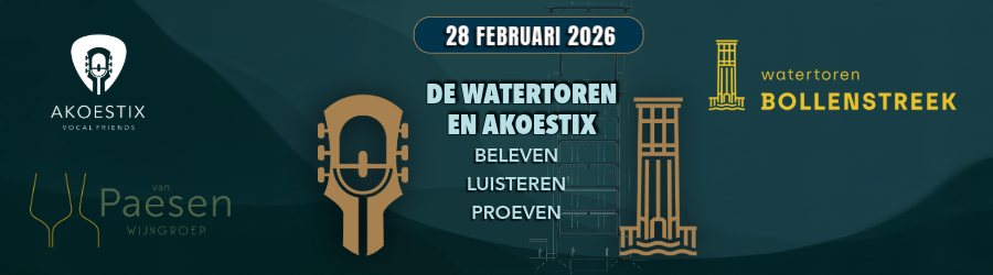 Geniet van een muzikaal optreden van Akoestix, proef schitterende wijnen van Van Paesen en beleef dit alles op de bijzondere locatie van Watertoren Bollenstreek.